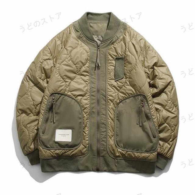 | 商品の特徴 | ■素材:ポリエステル、その他表キルトでエッジの利いた、ビッグシルエットのフェイクダウンミリタリージャケットです。デザインはそのままで、現代的にリデザインしたフライトジャケット膨らみのある中綿が防寒性が高く、さっと羽織るのに便利なアイテムです!両サイドのビッグポケットが収納に優れると同時に、程良くカジュアルな印象へと導きます。オニオンキルト構造が空気の層を作り、高い断熱性能を発揮。保温性抜群だけでなくオシャレで軽い着心地の一着デニムやチノと合わせて、シャツやパーカーとも合わせられるのでさっと羽織にも便利です。カジュアル、ストリート、アウトドア、スタイルを問わない万能アイテム!お手入れ:水洗い可生地の厚さ:厚手シルエット:ややゆったり伸縮性:なし裏地:あり【サイズ】 cmサイズ バスト 着丈 肩幅 袖丈M 116 66.5 53 59L 120 68 54 60XL 124 69.5 55 612XL 128 71 56 623XL 132 72.5 57 634XL 136 73.5 58 64 | ||
